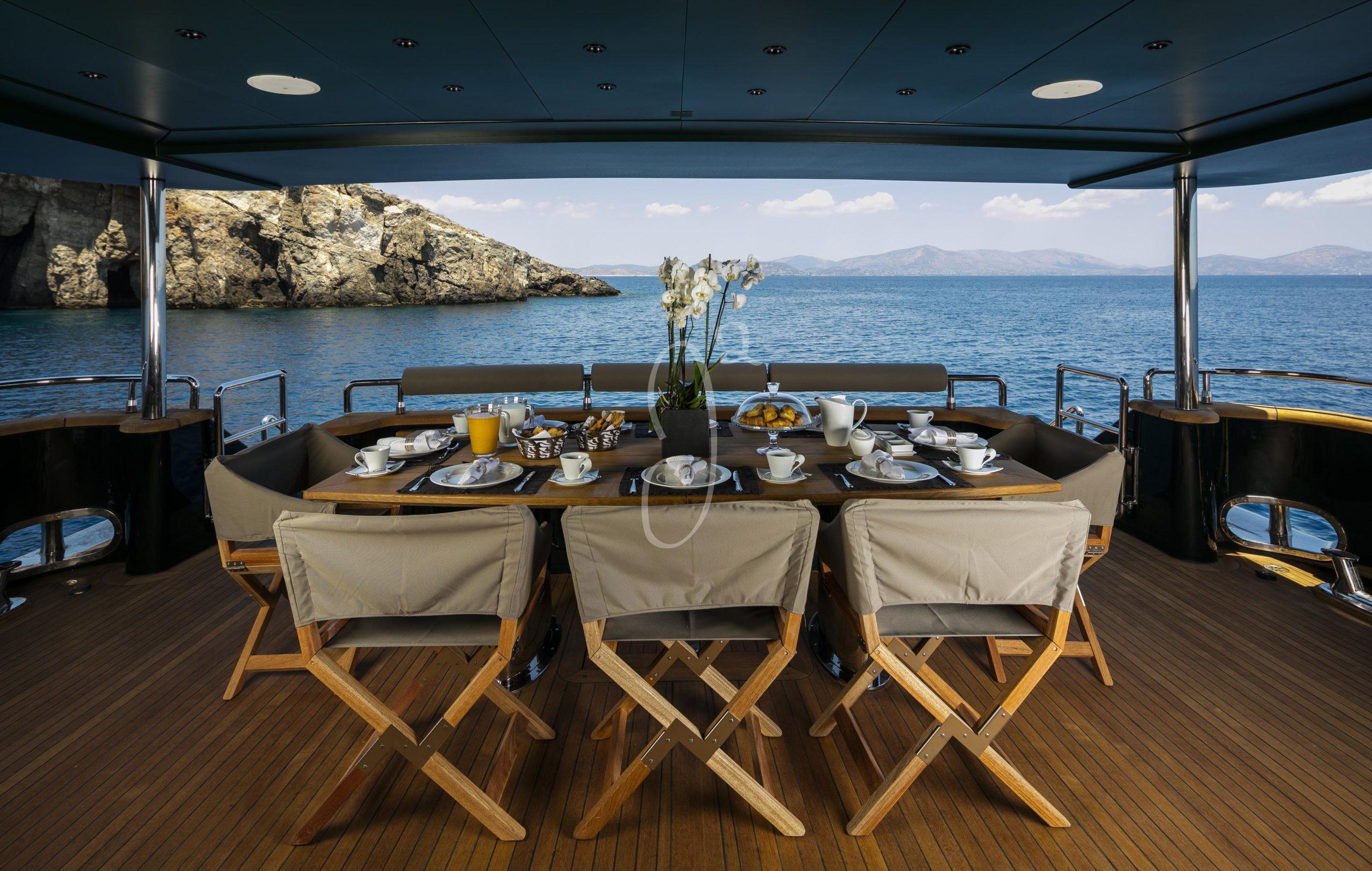 Length: 35.39m / 116.1ftBeam: 7.2m / 23.6ft Shipyard: Tecnomar Built: 2004Refit: 2016 Guests: 12-15Cabins: 6Crew: 5