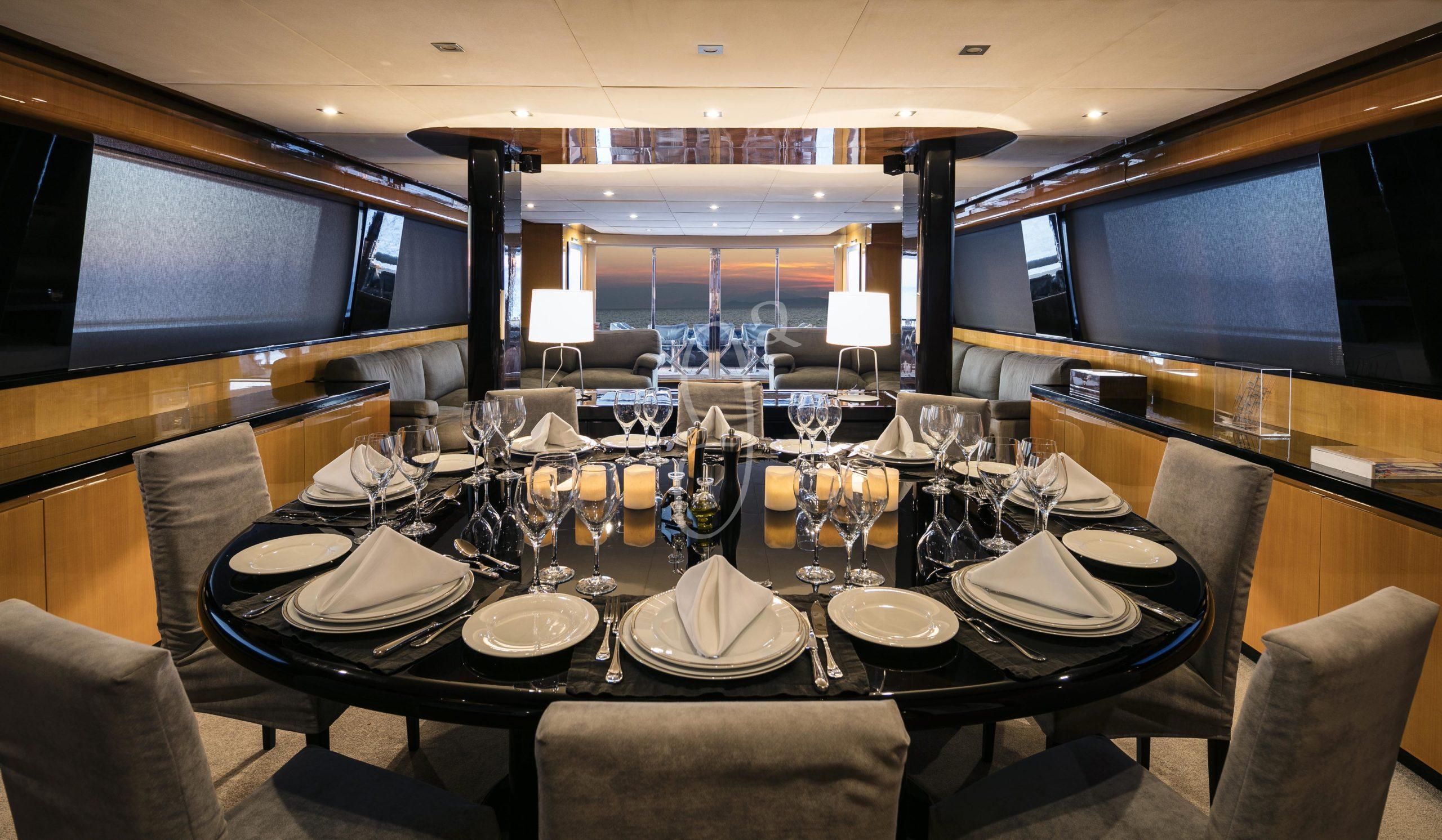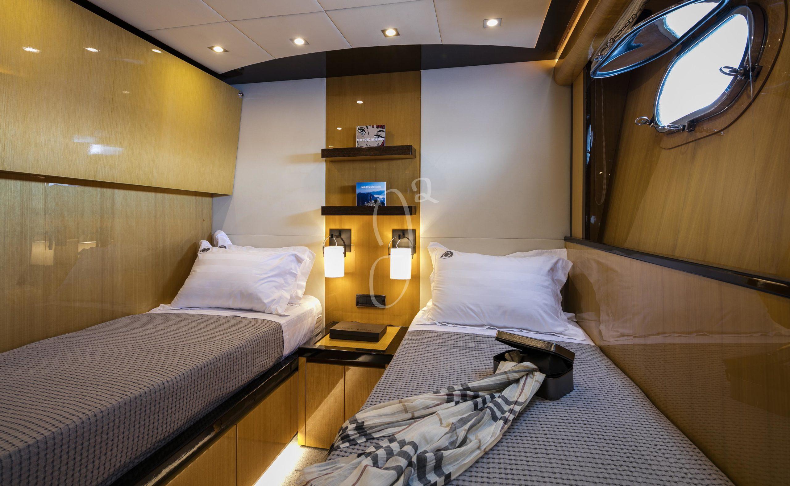 Cabin arrangement: 1 Master Suite, 1 VIP Stateroom, 1 Double cabin with Pullman bed, 2 Twin Cabins with Pullman Beds, All with en suite facilities Engines: 2 x 2000 HP MTUCruising Speed: 20 knotsFuel consumption: 580 lts/hr